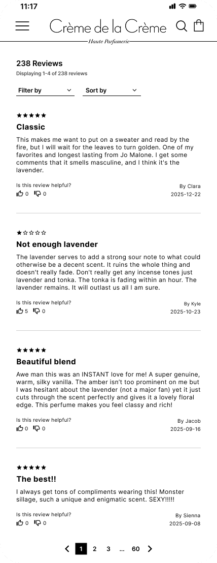 A section on every perfume page containing customers’ reviews.